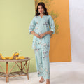 The Ice Blue Floral Print Cord Set with Crochet Lace detailing.